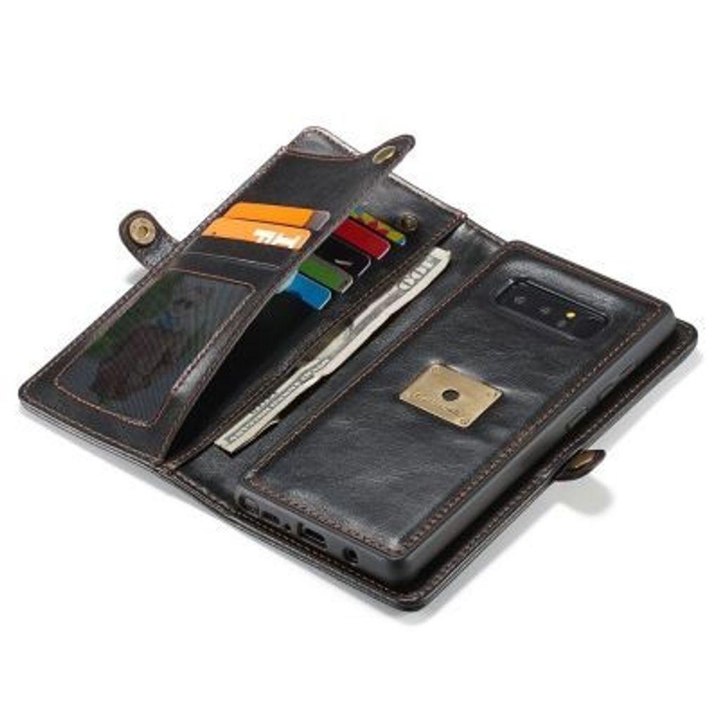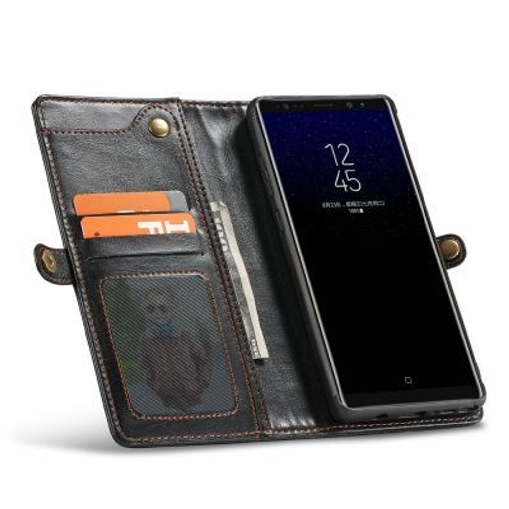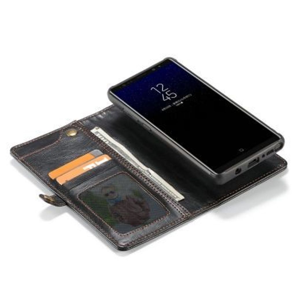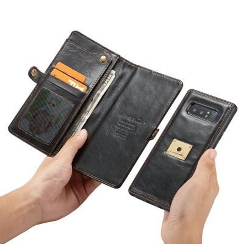 CaseMe for Samsung Galaxy Note 8 Handmade Premium Leather Wallet Case with Magnetic Closure Detachable Cover 7 ID Slots (BLACK)
