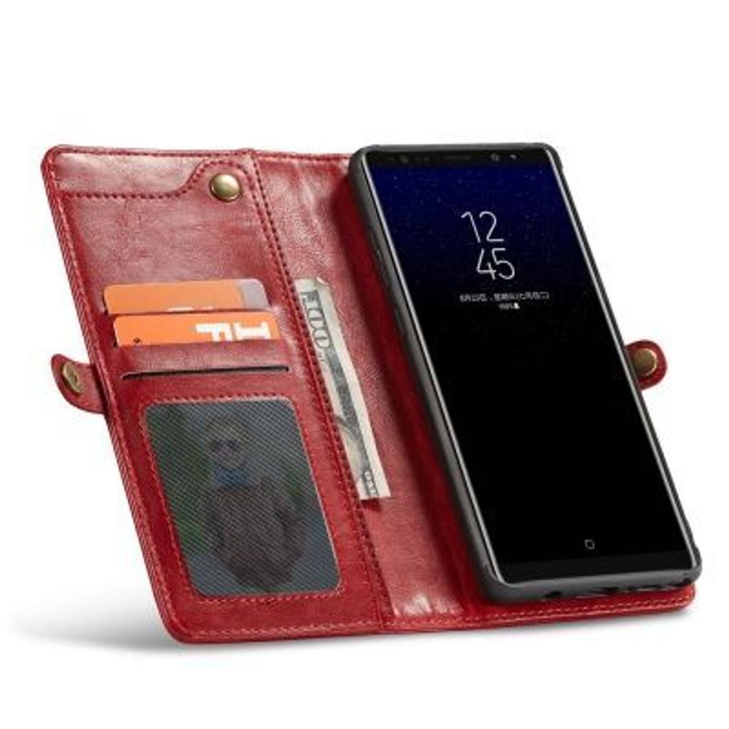 CaseMe for Samsung Galaxy Note 8 Handmade Premium Leather Wallet Case with Magnetic Closure Detachable Cover 7 ID Slots (RED)