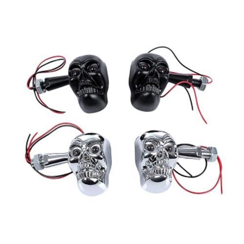 PAIR OF MOTORCYCLE MOTORBIKE SKULL SHAPE TURN SIGNAL LIGHT LED INDICATOR LAMP